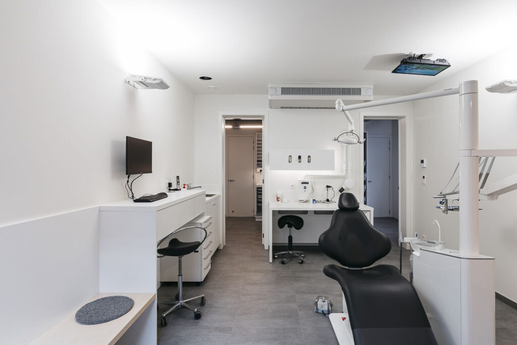 Elke kast van de praktijk werd tot op de millimeter uitgewerkt volgens de werkwijze van de klant om zo het gebruiksgemak en praktische aspect van de werkomgeving te garanderen.